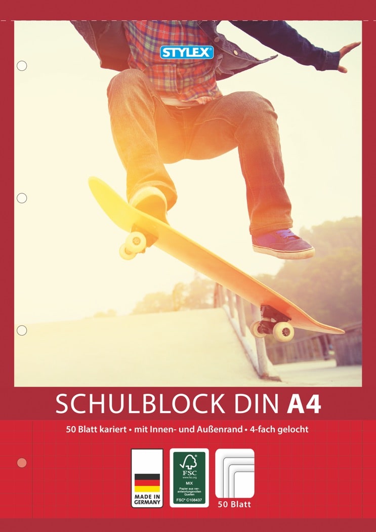0,80€ Published 28/07/2022 at 743 × 1051 in Aktuell ← Vorherige Nächste → Schulblock, kariert Lin 28, 50 Blatt, 4-fach gelocht, 60g/m², mit Innen- und Außenrand